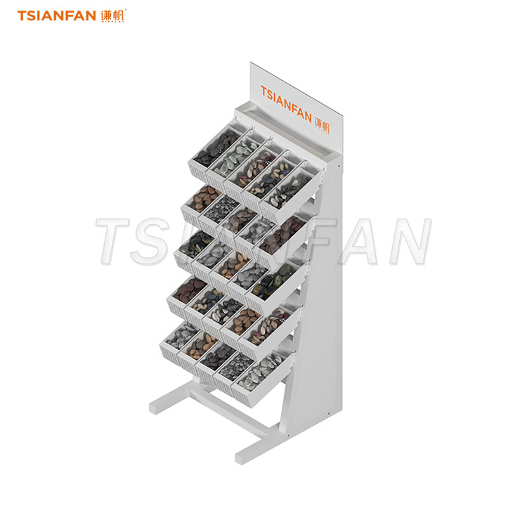 这款鹅卵石展示架共有5层,并可以进行分类,便于收纳...
