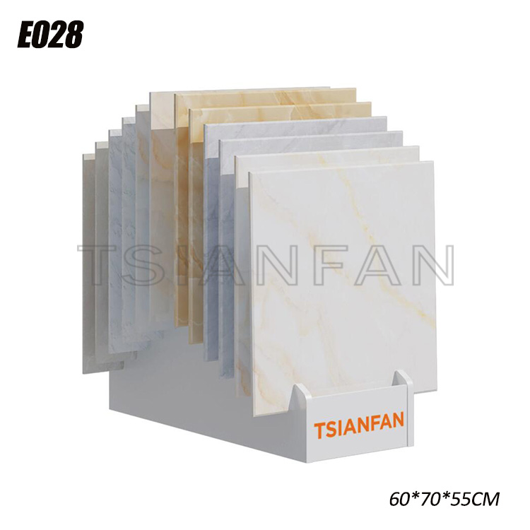 Product description: Tile display stands are versatile and can be used for showcasing a wide range of tile types, including ceramic, porcelain, natural stone, or mosaic tiles. They can also be adapted for displaying other similar products such as flooring samples or countertop materials.